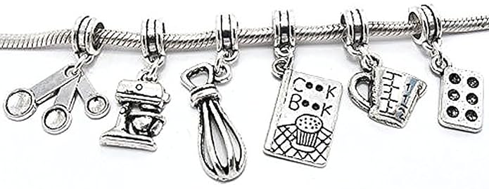 Every girl loves jewelery and this 6-charm set is not exempted. It fits most of the major brand bracelets and proudly identifies you as a baker of repute. Comes in a velvet pouch for easy storage.