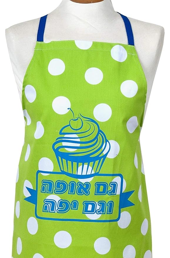 This Apron is made from cotton and fits all sizes. The Jewish inscription is handmade and it is also machine washable. It says, ‘Made in Jerusalem’ but we are not swearing by that. There are rumors that gentiles were involved in the shipping.